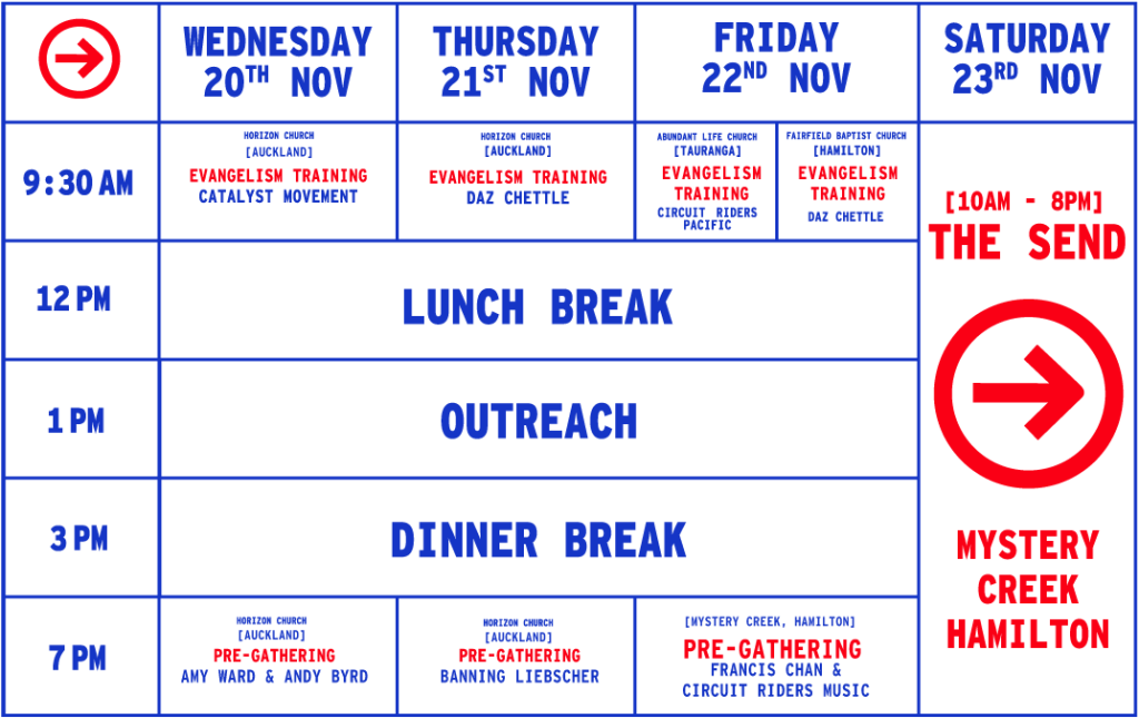 3 day outreach campaign leading up to Mystery Creek.
